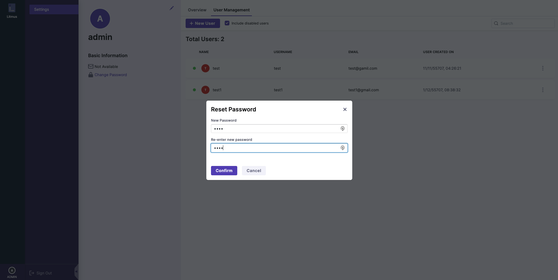 Reset Password of a User