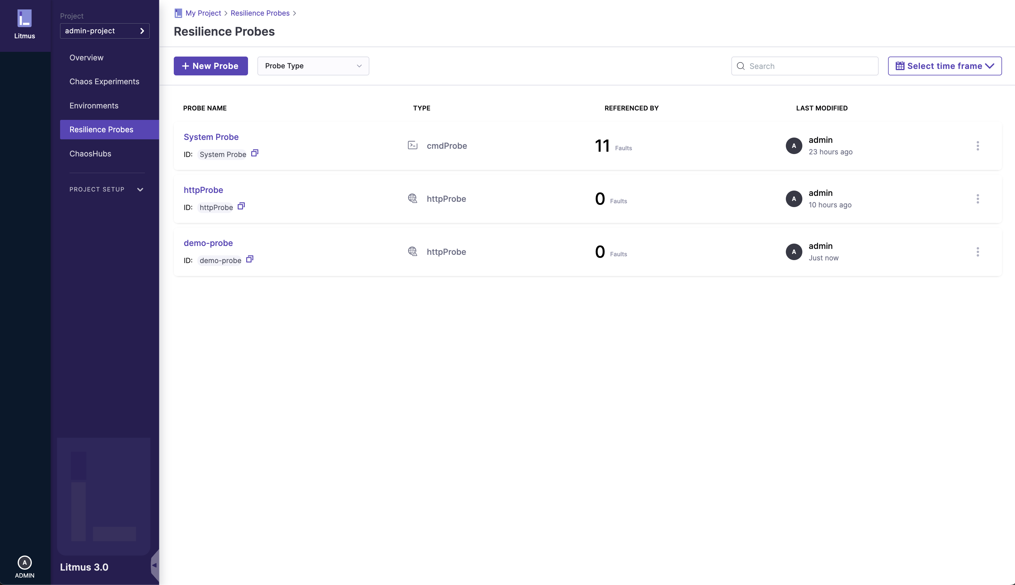 Navigate to the /probes page (Resilience Probes on the left nav), and click on the New Probe button.